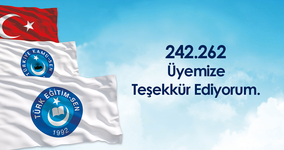 “15 Mayıs aidat kesintileri itibariyle sendika üye sayıları tespit edildi. Türk memur sendikacılığının kutup yıldızı Türk Eğitim Sen, 242.262 üyesiyle eğitim çalışanlarının güven kapısı olduğunu bir kez daha gösterdi. Türk Eğitim Sen, kararlı ve ilkeli sendikacılığın adresidir. Türk Eğitim Sen, her durum ve koşulda eğitim çalışanlarının yanında saf tutan hak arama mücadelesinin yolbaşçısıdır. Türk Eğitim Sen, eğitim çalışanlarının hak ve kazanımları söz konusu olduğunda, hiçbir denge hesabı gütmeden temsil ettiği kesim adına tavır alan cesur sendikacılığın amiral gemisidir. Türk Eğitim Sen, mensubu olmaktan şeref duyduğumuz aziz milletimizin ve ebed müddet bildiğimiz devletimizin menfaati söz konusu olduğunda sağına soluna “Kim var?” diye bakmadan, hesapsızca “Ben varım” diyen Türkiye sevdalılarının hayat verdiği milli bir sivil toplum kuruluşudur. Türk Eğitim Sen, Türkiye’dir! Türkiye; devletimizin kuruluş felsefesidir. Türkiye, Anayasamızın başlangıç ve değiştirilmesi teklif edilemeyecek ilk üç maddesinde anlamını bulan temel değerlerimizdir. Türkiye, Atatürk’tür. Türkiye, İstiklal Marşı’dır, Başkent Ankara’dır, Türkçe’dir, demokratik, laik ve sosyal hukuk devleti anlayışıdır. Türkiye, Anayasa 42. Maddede ifade edildiği şekliyle eğitim dilinin yalnız Türkçe olacağı şuurudur. Türkiye Anayasa 66. Maddede “Türkiye Cumhuriyeti Devleti’ne vatandaşlık bağı ile bağlı olan herkes Türk’tür” şeklinde vurgulanmış olan milli kimlik bilincidir. Türk Eğitim Sen’i, etkili sendikacılığın merkezi kılan 242.262 üyemize teşekkür ediyorum. Ayrıca ve hassaten; Her türlü zorluğa, sıkıntıya, fitneye rağmen Türk Eğitim Sen’i hep büyük kılan teşkilatımızın bütün emektarlarına bütün üyelerimiz ve eğitim çalışanları adına minnet ve şükranlarımı sunuyorum. Bu başarının asıl sahibi; şube başkanlarımız, şube yöneticilerimiz, ilçe yönetimlerimiz, kadın komisyonu üyelerimiz ve işyeri temsilcilerimizdir. Her biriyle gurur duyuyorum, Rabbim hepsinden razı olsun.” dedi.