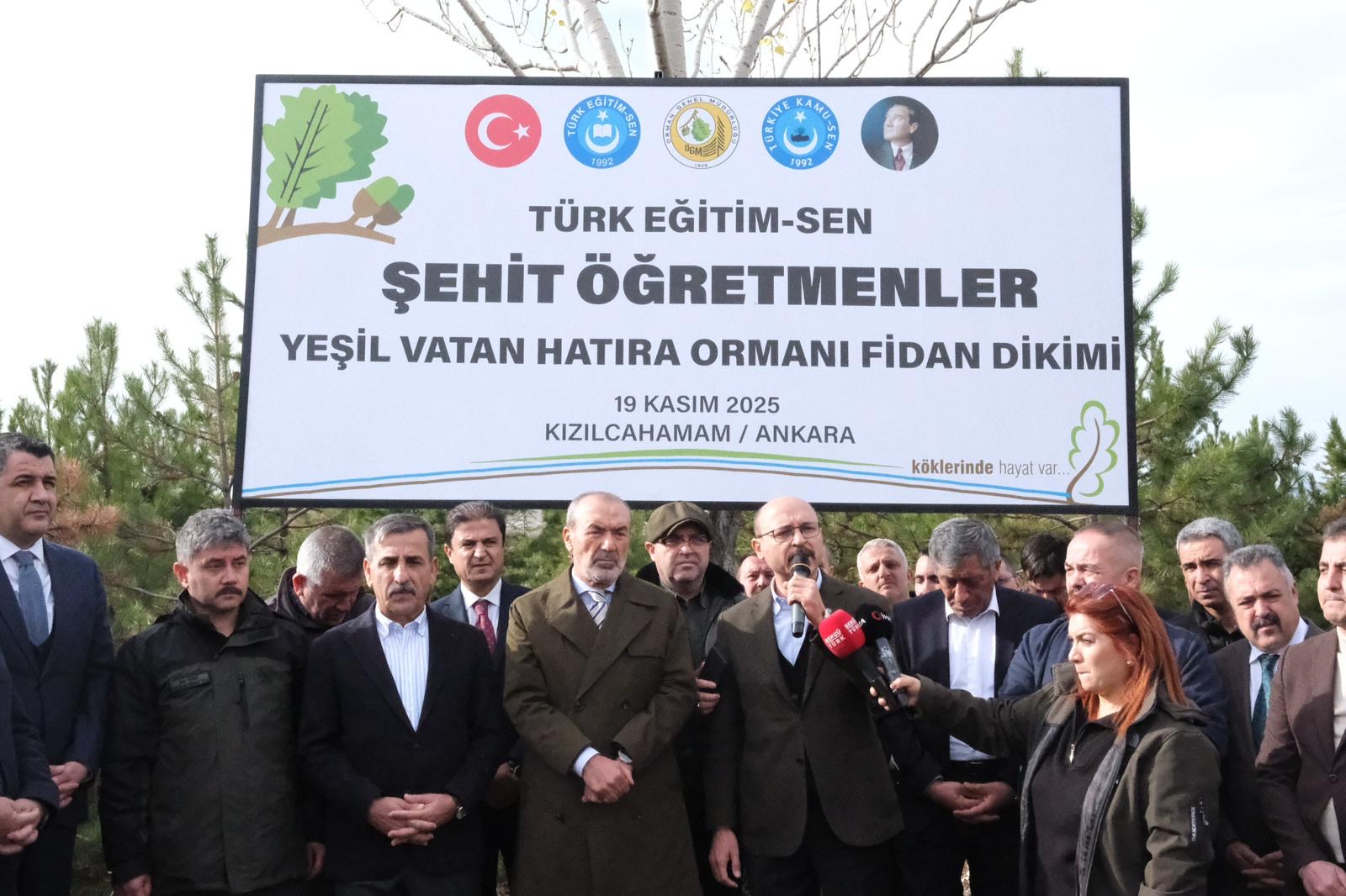 Türkiye Kamu Sen Genel Başkanı Önder Kahveci de yaptığı konuşmada, “Türk Eğitim Sen’in ağaç dikme ekinliğinde hep beraberiz. Çok anlamlı bir etkinlik. Hem şehit öğretmenlerimiz hem de Yeşil Vatanımızın gelecek nesillere bırakılması için düzenlenmiş bir etkinlik. Biz şehidimizi, şühedamızı unutmadan sendikal mücadelemizi güçlü bir şekilde ortaya koyuyoruz. Çünkü onlar bizim kahramanlarımız, ortak değerlerimiz. Onların manevi şahsiyetlerini yaşatmak bizler için şerefli bir yüktür. Biz bu yükü taşımak ile gurur duyuyoruz. Dolayısıyla Türk Eğitim Sen’in Genel Başkanı Talip Geylan başta olmak üzere emeği geçenleri tebrik ediyorum. Buradan da bu vesileyle yeni bir kampanyayı başlattığımızı da ifade etmek isterim. Türkiye Kamu Sen’in 600 bin üyesi bulunmaktadır. Orman Genel Müdürlüğü ile yapılacak protokol çerçevesinde her yeni üyemiz için bir fidan dikilmesine yönelik bir kampanya başlatacağız.