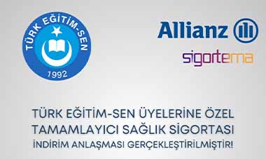 Türk Eğitim -Sen ile Allianz Sigorta arasında yapılan iş birliği kapsamında, tamamlayıcı sağlık sigortasında %17,5 indirim sağlanmıştır. Bu özel indirimden yalnızca üyelerimiz faydalanabilecektir.